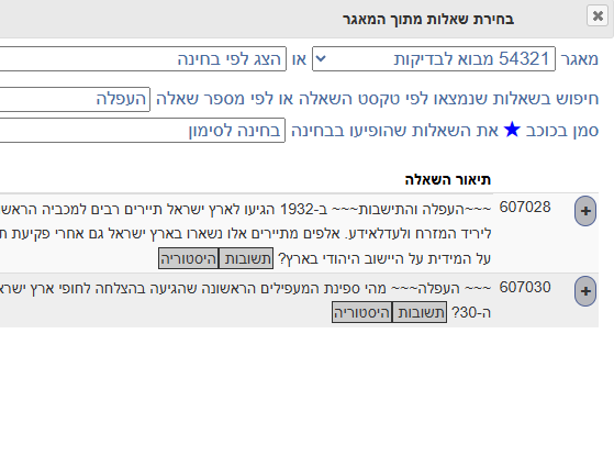 לאור בקשות מהמשתמשים, מסך בחירת שאלות מהמאגר למבחן שודרג וכעת ניתן לאתר שאלות