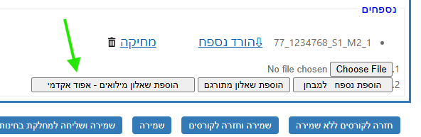 לבחור קובץ PDF ואז ללחוץ על הכפתור "הוספת שאלון מילואים - אפוד אקדמי"