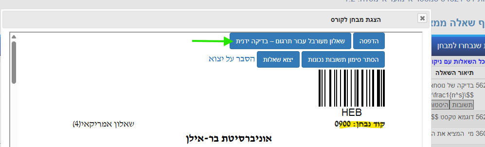 כדי ליצור בחינה כזו יש ליצור מבחן רב ברירה ובמסך עריכת בחינה לצרף את השאלון באמצעות לחיצה על הכפתור